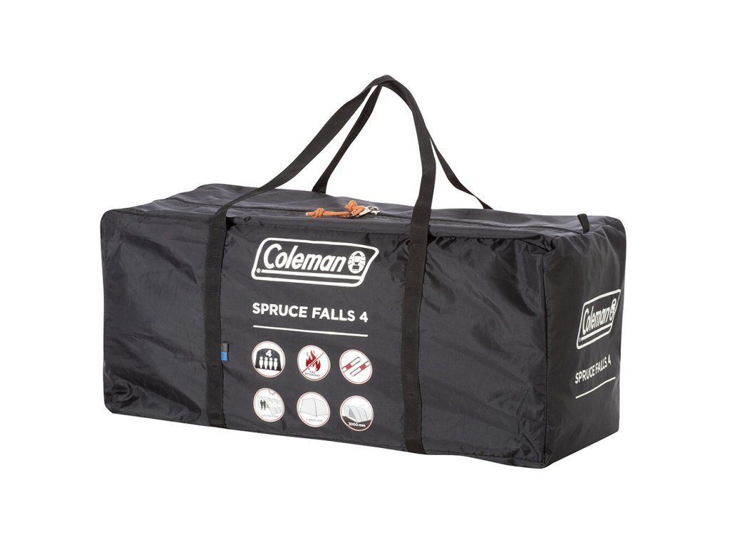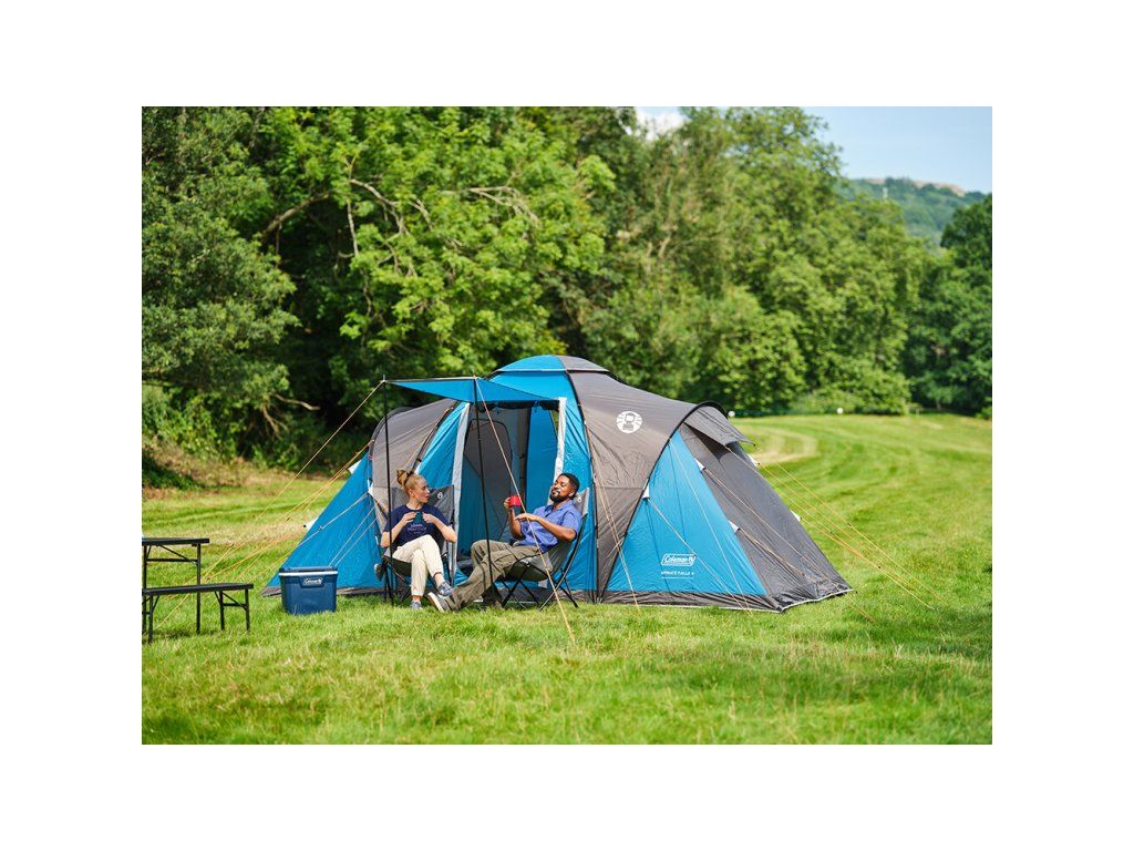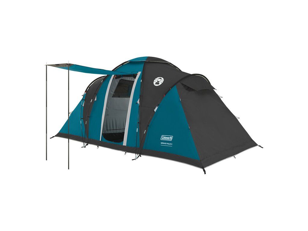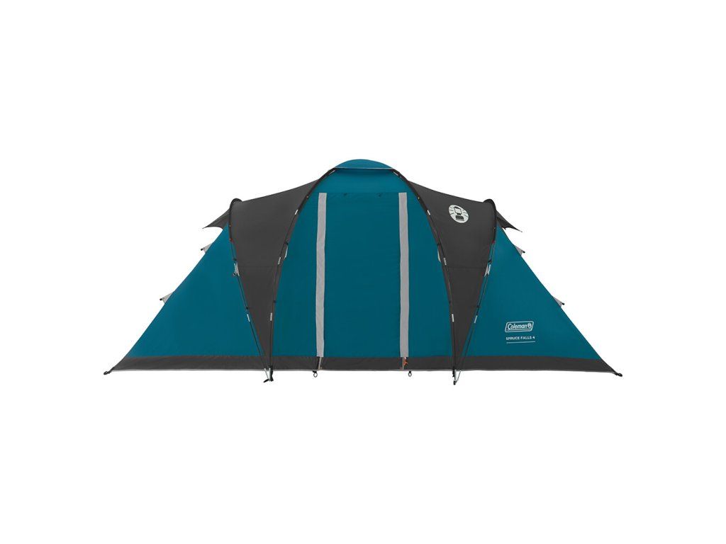 Spruce Falls 4 od značky Coleman je stan vhodný na kempování pro rodinu nebo skupinu přátel. Svým tvarem kombinuje tunelovou a kopulovitou konstrukci. Díky tomu nabízí prostornou předsíň s výškou 150 cm a dvě samostatné ložnice. Uprostřed má stan dva vchody, které lze pomocí dvou tyčí využít jako markýzu a tím získat zastíněný prostor před stanem, ideální pro posezení na kempingové židli. Stan je dobře odvětrán a díky síťované ventilaci umožňuje proudění vzduchu, bez vninkutí nežádoucího hmyzu.