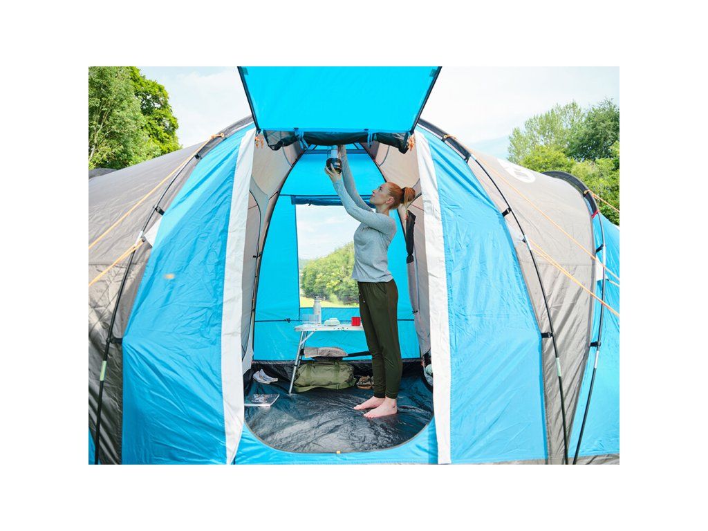 Prostorný stan pro čtyři osoby. Má dvě samostatné ložnice a dva vchody ve střední části. Ty lze otevřít jako markýzu. Integrovaná podlážka účinně brání vniknutí vlhkosti, nečistotám a hmyzu.