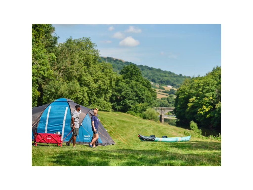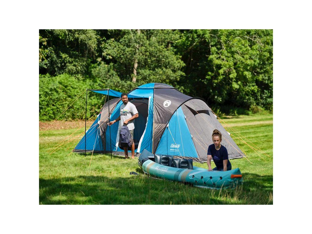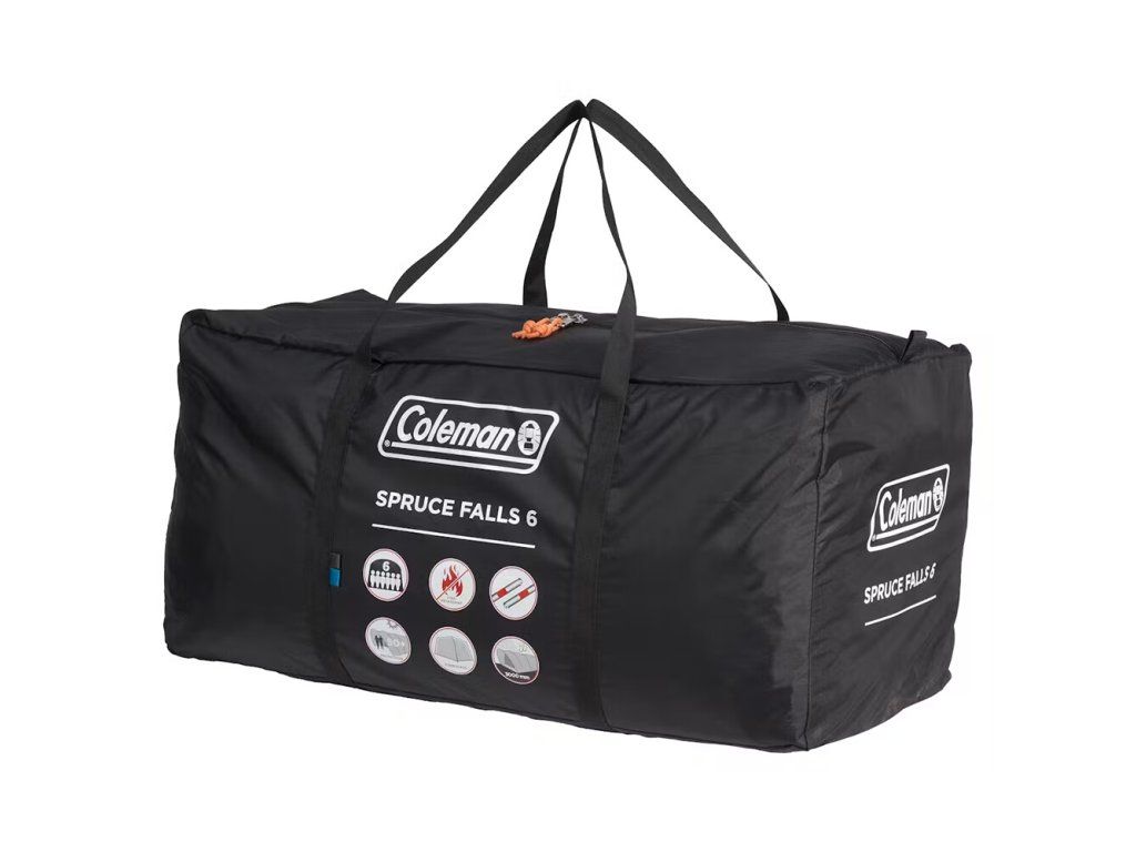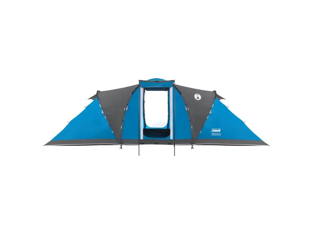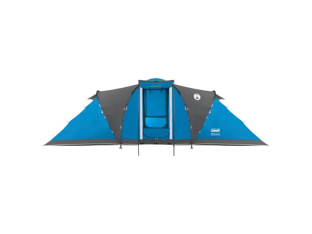 Spruce Falls 6 od značky Coleman je stan vhodný na kempování pro rodinu nebo skupinu přátel. Svým tvarem kombinuje tunelovou a kopulovitou konstrukci. Díky tomu nabízí prostornou předsíň s výškou 160 cm a dvě samostatné ložnice kde se vyspí až šest osob. Uprostřed má stan dva vchody, které lze pomocí dvou tyčí využít jako markýzu a tím získat zastíněný prostor před stanem, ideální pro posezení na kempingové židli. Zajímavostí jsou také otvory pro tažení elektrických kabelů mimo vchod a velké úložné kapsy uvnitř stanu, které vám poslouží pro uložení drobností, jako je lampička, toaletní potřeby a další vybavení.