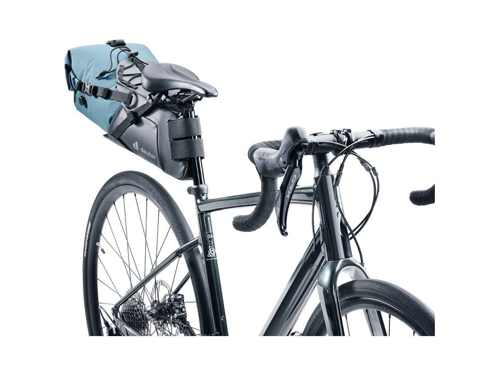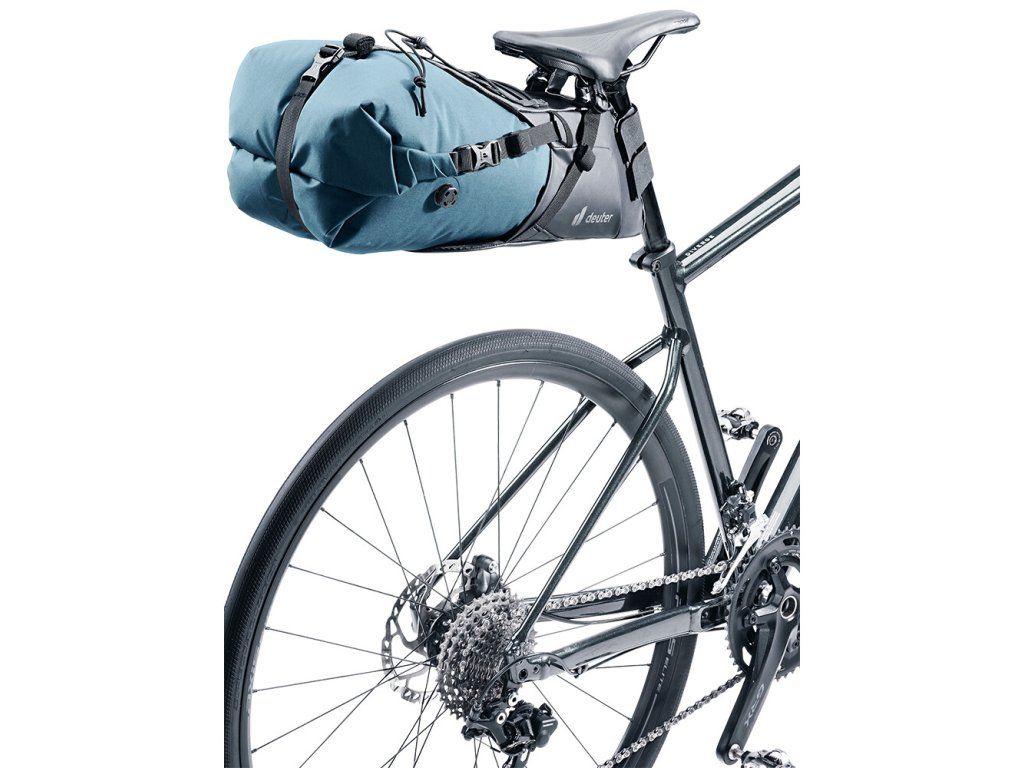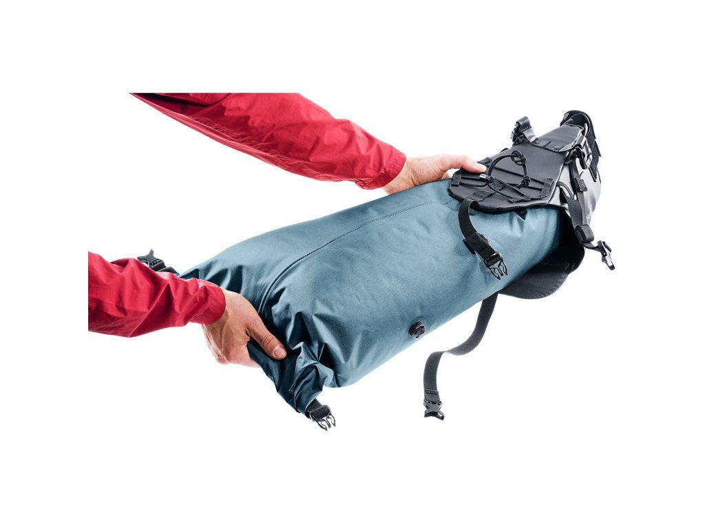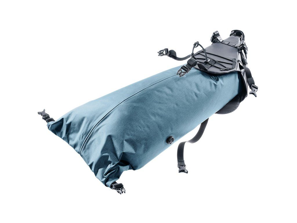 Podsedlovka Cabezon SB 16 od značky deuter je voděodolná brašna, kterou lehce připevníte na sedlovku vašeho mazlíka. Má zesílené dno a celkově je velmi odolný a hlavně praktický, což ocení každý milovník putování na kole. Dvoudílná konstrukce umožňuje rychlou manipulaci. Vak totiž snadno vysunete, zatímco postroj zůstane na kole. Ideální na letní spacák či hamaku, bez kterých se na svých bikepackingových výpravách neobejdete.