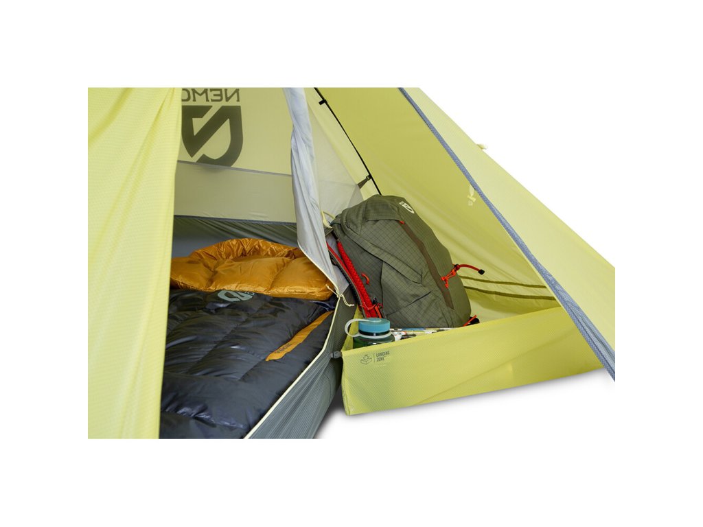Turistický stan od značky Nemo je samonosný, se dvěma vchody a s velice nízkou hmotností, pouhých 1500 g. Prostorné předsíňky využijete pro uložení batohů a díky jednomu podlážkovému dílu navíc, si v předsíňce vytvoříte čistý a suchý oddělený prostor (pro uložení bot, lezecké helmy a pod.). Vnitřní stan má vchody z neprůhledné síťoviny, která poskytuje dostatek soukromí a funguje také jako moskytiéra. Je zde dostatek kapes pro uložení drobností, včetně speciální přihrádky na čelovku, která světlo rovnoměrně rozptýlí po celém vnitřku stanu.