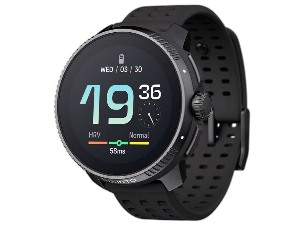 Hodinky pro závodění a trénink s výdrží baterie až 40 hodin v tréninkovém režimu a 26 dní v běžném denním režimu. Amoled displej, umělá inteligence Suunto Coach a zpětná vazba na základě měření HRV.